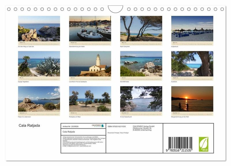 QUALITÄT - Hochwertiger Fotokalender mit 12 wunderschönen Motiven auf lichtbeständigem Bilderdruckpapier, robuste Spiralbindung mit Aufhängebügel.NACHHALTIG - deutliche Abfallreduzierung durch bedarfsgerechte Einzelstückfertigung, umweltfreundliches FSC-zertifiziertes Papier, Produktion in Deutschland, klimabewusste Logistik.PERFEKTES GESCHENK - Kalender für Freunde und Familie, für Kinder und Erwachsene, jung und alt, zu Weihnachten, Geburtstag oder zwischendurch.VIELFALT - Bildkalender in verschiedenen Formaten, z.B. DIN A5, DIN A4, DIN A3 sowie DIN A2. Ob Naturmotiv, Gemälde oder Fotos, ideal für ein persönliches Wohlfühlambiente.Bei Cala Ratjada findet man schöne Buchten und genießt den Charme der ursprünglichen Insel.. von Autor(in): Rosemarie Prediger
