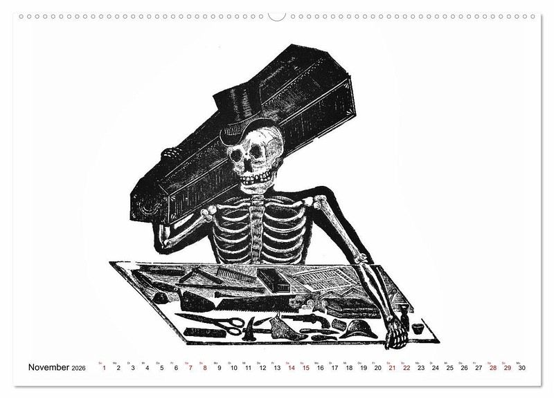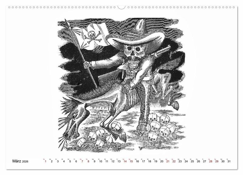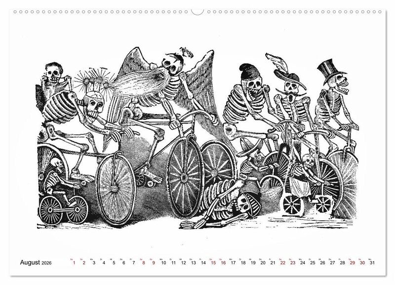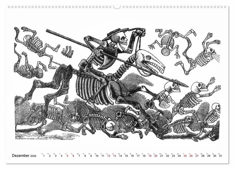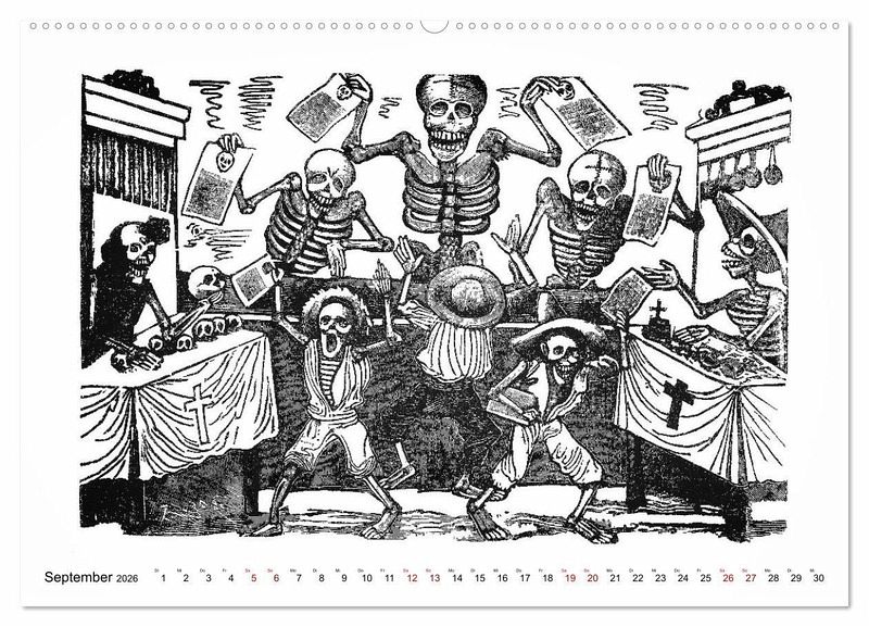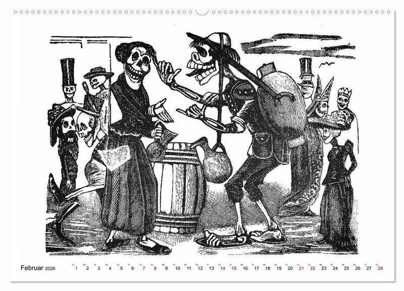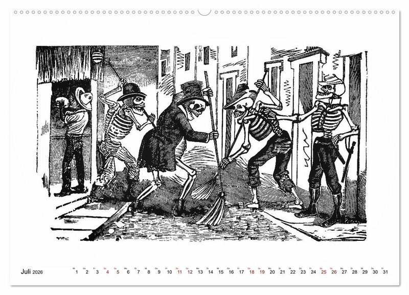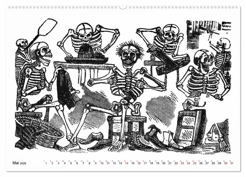 Unser Kalender zeigt Ihnen die berühmten Skelette des Mexikaners José Guadalupe POSADA (1854 - 1913) - die Calaveras - im Alltag:
