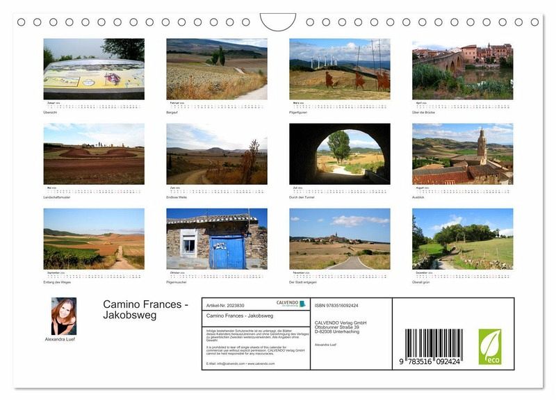 QUALITÄT - Hochwertiger Fotokalender mit 12 wunderschönen Motiven auf lichtbeständigem Bilderdruckpapier, robuste Spiralbindung mit Aufhängebügel.NACHHALTIG - deutliche Abfallreduzierung durch bedarfsgerechte Einzelstückfertigung, umweltfreundliches FSC-zertifiziertes Papier, Produktion in Deutschland, klimabewusste Logistik.PERFEKTES GESCHENK - Kalender für Freunde und Familie, für Kinder und Erwachsene, jung und alt, zu Weihnachten, Geburtstag oder zwischendurch.VIELFALT - Bildkalender in verschiedenen Formaten, z.B. DIN A5, DIN A4, DIN A3 sowie DIN A2. Ob Naturmotiv, Gemälde oder Fotos, ideal für ein persönliches Wohlfühlambiente.Unterwegs am Jakobsweg von St. Jean-Pied-de-Port nach Santiago de Compostela von Autor(in): Alexandra Luef