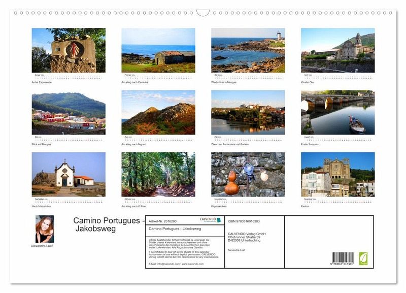 QUALITÄT - Hochwertiger Fotokalender mit 12 wunderschönen Motiven auf lichtbeständigem Bilderdruckpapier, robuste Spiralbindung mit Aufhängebügel.NACHHALTIG - deutliche Abfallreduzierung durch bedarfsgerechte Einzelstückfertigung, umweltfreundliches FSC-zertifiziertes Papier, Produktion in Deutschland, klimabewusste Logistik.PERFEKTES GESCHENK - Kalender für Freunde und Familie, für Kinder und Erwachsene, jung und alt, zu Weihnachten, Geburtstag oder zwischendurch.VIELFALT - Bildkalender in verschiedenen Formaten, z.B. DIN A5, DIN A4, DIN A3 sowie DIN A2. Ob Naturmotiv, Gemälde oder Fotos, ideal für ein persönliches Wohlfühlambiente.Pilgerweg entlang der portugisischen Küste von Porto nach Santiago de Compostela von Autor(in): Alexandra Luef