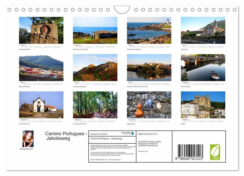 QUALITÄT - Hochwertiger Fotokalender mit 12 wunderschönen Motiven auf lichtbeständigem Bilderdruckpapier, robuste Spiralbindung mit Aufhängebügel.NACHHALTIG - deutliche Abfallreduzierung durch bedarfsgerechte Einzelstückfertigung, umweltfreundliches FSC-zertifiziertes Papier, Produktion in Deutschland, klimabewusste Logistik.PERFEKTES GESCHENK - Kalender für Freunde und Familie, für Kinder und Erwachsene, jung und alt, zu Weihnachten, Geburtstag oder zwischendurch.VIELFALT - Bildkalender in verschiedenen Formaten, z.B. DIN A5, DIN A4, DIN A3 sowie DIN A2. Ob Naturmotiv, Gemälde oder Fotos, ideal für ein persönliches Wohlfühlambiente.Pilgerweg entlang der portugisischen Küste von Porto nach Santiago de Compostela von Autor(in): Alexandra Luef