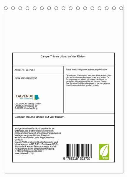 QUALITÄT - Hochwertiger Fotokalender mit 12 wunderschönen Motiven auf lichtbeständigem Bilderdruckpapier, robuste Spiralbindung.NACHHALTIG - deutliche Abfallreduzierung durch bedarfsgerechte Einzelstückfertigung, umweltfreundliches FSC-zertifiziertes Papier, Produktion in Deutschland, klimabewusste Logistik.PERFEKTES GESCHENK - Kalender für Freunde und Familie, für Kinder und Erwachsene, jung und alt, zu Weihnachten, Geburtstag oder zwischendurch.VIELFALT - Bildkalender in verschiedenen Formaten, z.B. DIN A5, DIN A4, DIN A3 sowie DIN A2. Ob Naturmotiv, Gemälde oder Fotos, ideal für ein persönliches Wohlfühlambiente.Einmal Camping, immer Camping! von Autor(in): Mario Weigt