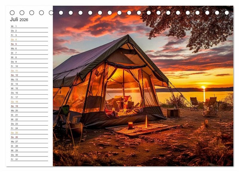 QUALITÄT - Hochwertiger Fotokalender mit 12 wunderschönen Motiven auf lichtbeständigem Bilderdruckpapier, robuste Spiralbindung.NACHHALTIG - deutliche Abfallreduzierung durch bedarfsgerechte Einzelstückfertigung, umweltfreundliches FSC-zertifiziertes Papier, Produktion in Deutschland, klimabewusste Logistik.PERFEKTES GESCHENK - Kalender für Freunde und Familie, für Kinder und Erwachsene, jung und alt, zu Weihnachten, Geburtstag oder zwischendurch.VIELFALT - Bildkalender in verschiedenen Formaten, z.B. DIN A5, DIN A4, DIN A3 sowie DIN A2. Ob Naturmotiv, Gemälde oder Fotos, ideal für ein persönliches Wohlfühlambiente.Zelten ist eine beliebte Freizeitaktivität im Freien und bietet die Möglichkeit, die Natur hautnah zu erleben. von Autor(in): Steffen Gierok ; Magik Artist Design