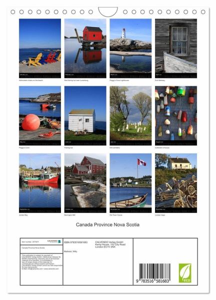 QUALITY - High-quality photo calendar with 12 beautiful images on light-resistant paper, robust spiral binding with hanger.SUSTAINABLE - Significant waste reduction due to print-on-demand production, environmentally friendly FSC-certified paper, produced in the UK, climate-conscious logistical processes.PERFECT GIFT - calendars for friends and family, for children, all ages and all occasions, from Christmas to birthdays and everything in between.LOTS OF CHOICE - Wall calendars in different sizes (DIN A4 and DIN A3), for any topic and personal taste, featuring photography, painting and illustrations.Nova Scotia is one of Canada's three Maritime provinces., author: Willy Matheisl