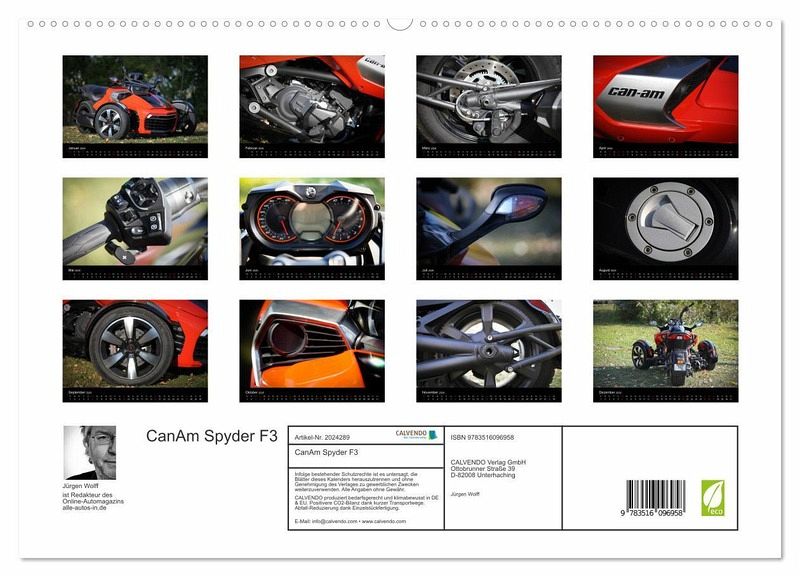 PREMIUM-LINIE - Brillanter Fotokalender mit 12 wunderschönen Motiven, Kunstdruck in Hochglanz in Museumsqualität.QUALITÄT - edle Materialien, stabile Rückwand mit 2 innovativen Einstecktaschen für eine optimale Präsentation an der Wand.NACHHALTIG - deutliche Abfallreduzierung durch bedarfsgerechte Einzelstückfertigung, umweltfreundliches FSC-zertifiziertes Papier, Produktion in Deutschland, klimabewusste Logistik.PERFEKTES GESCHENK - Kalender für Freunde und Familie, für Kinder und Erwachsene, jung und alt, zu Weihnachten, Geburtstag oder zwischendurch.Motorrad-Feeling ohne Motorrad: Das bullige HighTech-Trike CanAm Spyder F3 von Autor(in): Jürgen Wolff