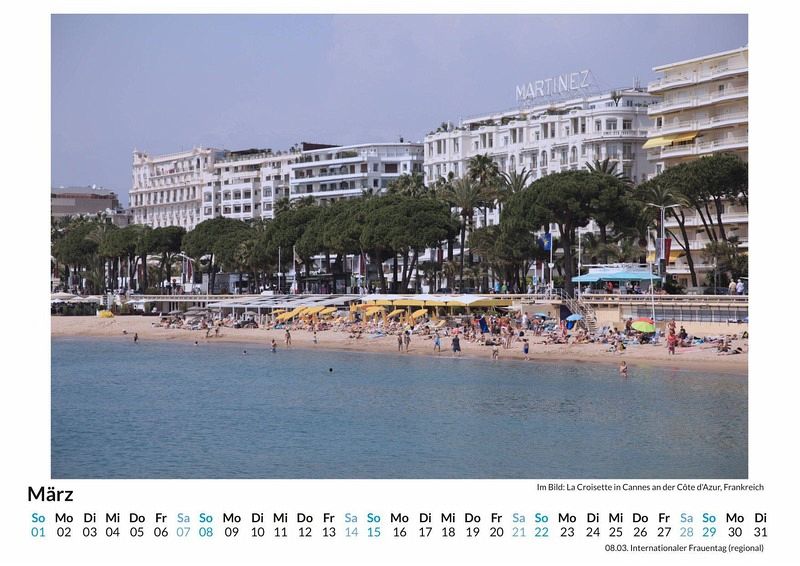 Entdecken Sie die glamouröse Welt von Cannes mit unserem exklusiven Wandkalender! Lassen Sie sich Monat für Monat von 12 atemberaubenden Motiven dieser weltberühmten Stadt an der Côte d'Azur verzaubern. Ob die malerische Altstadt, der legendäre Boulevard de la Croisette oder die traumhaften Strände - dieser Kalender bringt das Flair der französischen Riviera direkt in Ihr Zuhause. Gedruckt auf hochwertigem, lichtbeständigem Bilderdruckpapier und in Deutschland auf FSC-zertifiziertem Papier produziert, vereint er Nachhaltigkeit und Eleganz. Perfekt als Geschenk oder für die eigene Wand - holen Sie sich ein Stück Cannes in Ihr Leben! Hochwertig Erleben Sie ein Jahr voller Eleganz mit unserem Premium-Fotokalender. Jedes der 12 Motive ist auf hochwertigem, lichtbeständigem Bilderdruckpapier gedruckt, um die Lebendigkeit jedes Bildes zu bewahren. Die robuste Spiralbindung gewährleistet Langlebigkeit und einfache Handhabung. Nachhaltig Unser Engagement für die Umwelt spiegelt sich in jedem Exemplar wider. Durch die Produktion auf Abruf reduzieren wir signifikant unseren Abfall. Wir verwenden ausschließlich umweltfreundliches, FSC-zertifiziertes Papier. Stolz gefertigt in Deutschland, achten wir bei unserer Logistik auf Klimaschutz, um unseren ökologischen Fußabdruck zu minimieren. Das ideale Geschenk Dieser Kalender ist das perfekte Präsent für jeden Anlass - ob Weihnachten, Geburtstage oder einfach als liebevolle Aufmerksamkeit zwischendurch. Geeignet für Freunde, Familie, Kinder und Erwachsene gleichermaßen, bereichert er jedes Zuhause mit seiner Vielfalt und Schönheit, unabhängig vom Alter der Beschenkten.