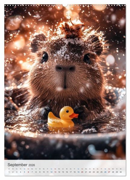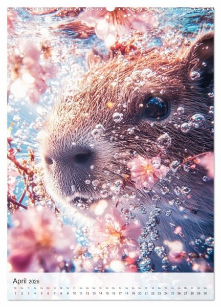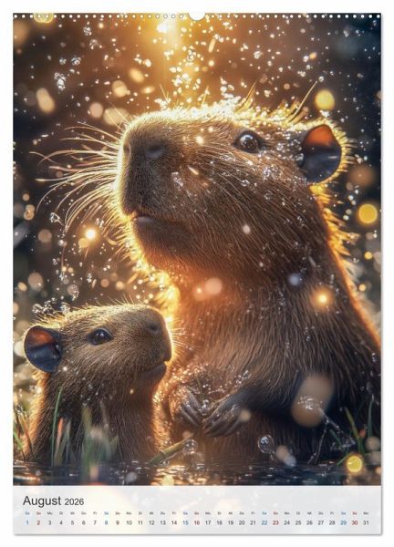 Stell dir vor, die Welt wird leise. Kein Stress, kein Lärm - nur du, ein warmer Sonnenstrahl und ein Capybara, das sich genüsslich ins Gras kuschelt. Capybaras sind Riesenmeerschweine. Sie zeigen uns, was wirklich zählt: langsame Momente, tiefe Atemzüge und ganz viel Nähe. Ob beim Dösen am Wasser oder beim Kuscheln mit Freunden - sie leben die Kunst der echten Gemütlichkeit. Gönn dir eine Pause vom Alltag. Alle hier gezeigten Bilder wurden mit Sorgfalt, Liebe und mit Hilfe einer KI generiert. Abschließend werden sie mit Bildbearbeitungsprogrammen überarbeitet und in den Kalender eingefügt.