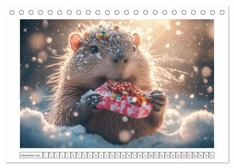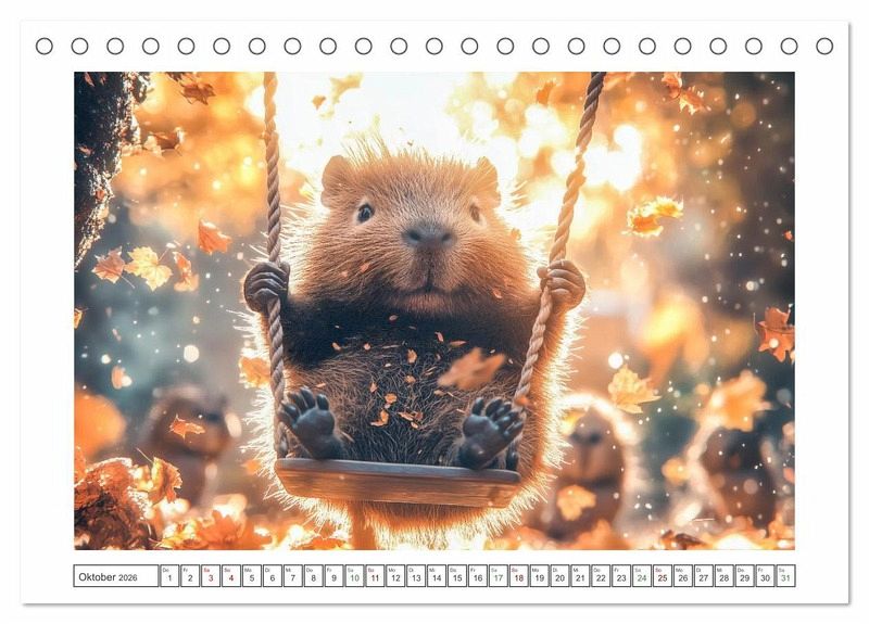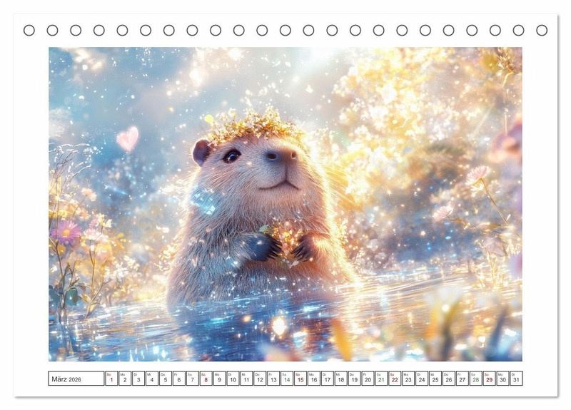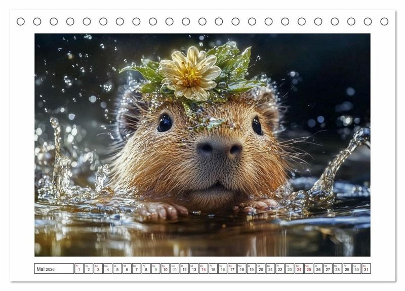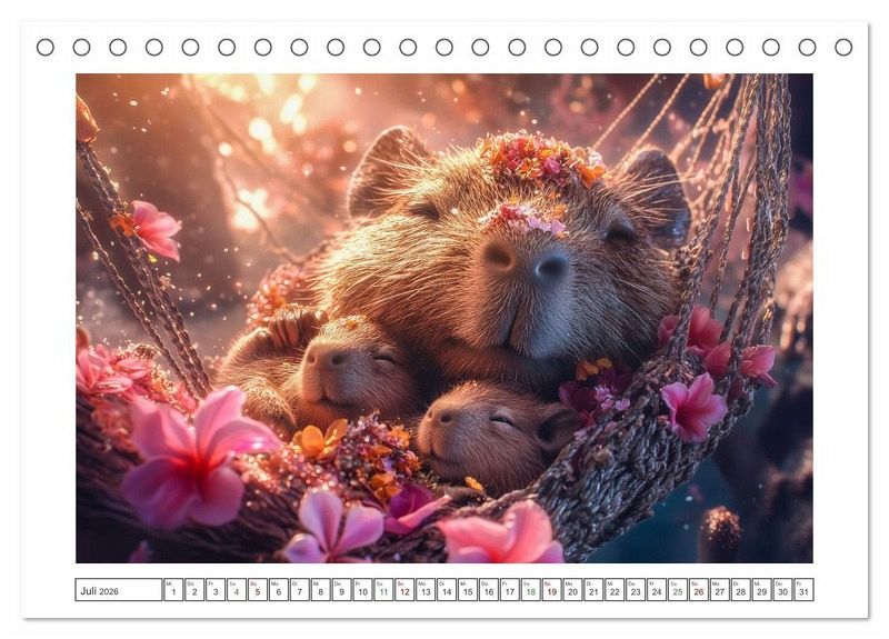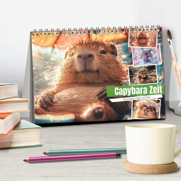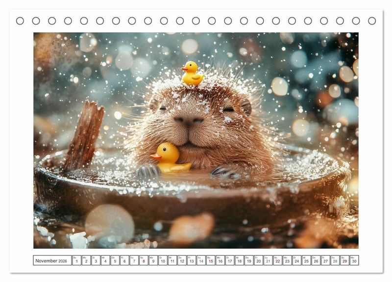 Mach's dir gemütlich, atme tief durch und lass die Welt einfach mal kurz weitermachen - ohne dich. In der Capybara-Zeit geht's nicht um Minuten oder Deadlines, sondern um flauschige Pausen, warme Sonnenstrahlen und das süße Gefühl, einfach nichts zu müssen. Ob du badest, döst oder einfach nur chillst, du bist genau richtig. Alle hier gezeigten Bilder wurden mit Sorgfalt, Liebe und mit Hilfe einer KI generiert. Abschließend werden sie mit Bildbearbeitungsprogrammen überarbeitet und in den Kalender eingefügt.