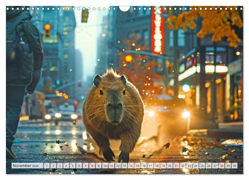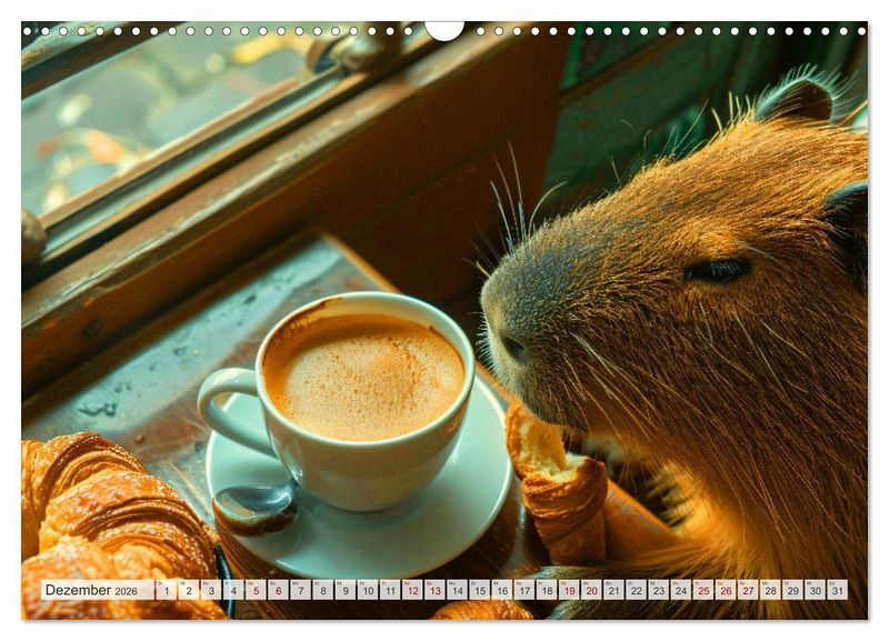 Entdecke das bezaubernde Leben der Capybaras und tauche ein in die wunderbare Welt der Capybaras. Jeden Monat gibt es eine neue, herzerwärmende KI-generierte Szene, in der die liebenswerten Tiere menschliche Alltagssituationen meistern. Ob beim Frühstück, im Büro oder im Urlaub - lass dich von den humorvollen und bezaubernden Momenten verzaubern, die dir jeden Tag ein Lächeln ins Gesicht zaubern. Perfekt für Tierliebhaber und alle, die das Besondere suchen. Hol dir dein Stück Glück nach Hause und erlebe ein Jahr voller Abenteuer mit den Capybaras.