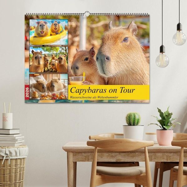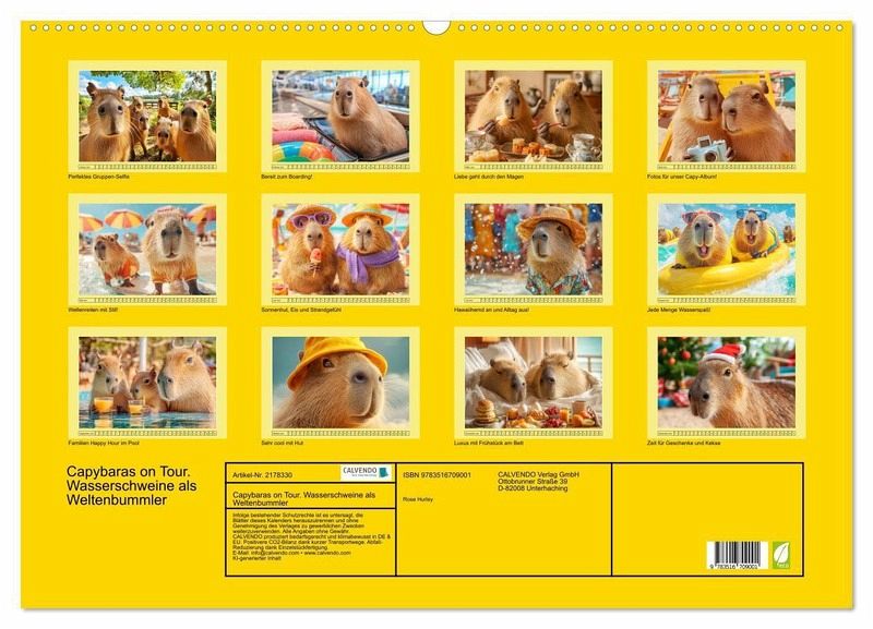 Dieser Kalender vereint niedliche Wasserschweine mit originellen, humorvollen Szenen, die mit der Hilfe von KI entstanden sind. Jedes Monatsmotiv erzählt eine kleine Geschichte voller Lebensfreude und Urlaubsstimmung. Vom Flughafen bis zum Strand und vom Hotelfrühstück bis zum Weihnachtsfest begleiten uns die niedlichen Wasserschweine durchs Jahr. Ein perfektes Geschenk für Tierliebhaber, Reiselustige und alle, die ihren Alltag mit süßen Capybaras erhellen möchten.