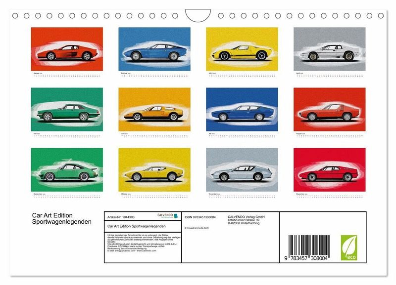 QUALITÄT - Hochwertiger Fotokalender mit 12 wunderschönen Motiven auf lichtbeständigem Bilderdruckpapier, robuste Spiralbindung mit Aufhängebügel.NACHHALTIG - deutliche Abfallreduzierung durch bedarfsgerechte Einzelstückfertigung, umweltfreundliches FSC-zertifiziertes Papier, Produktion in Deutschland, klimabewusste Logistik.PERFEKTES GESCHENK - Kalender für Freunde und Familie, für Kinder und Erwachsene, jung und alt, zu Weihnachten, Geburtstag oder zwischendurch.VIELFALT - Bildkalender in verschiedenen Formaten, z.B. DIN A5, DIN A4, DIN A3 sowie DIN A2. Ob Naturmotiv, Gemälde oder Fotos, ideal für ein persönliches Wohlfühlambiente.in Photoshop verfremdete Sportwagen der 70er und 80er Jahre von Autor(in): mquadrat media