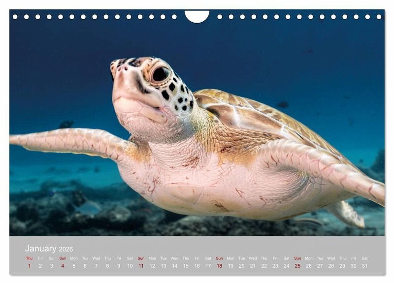 QUALITY - High-quality photo calendar with 12 beautiful images on light-resistant paper, robust spiral binding with hanger.SUSTAINABLE - Significant waste reduction due to print-on-demand production, environmentally friendly FSC-certified paper, produced in the UK, climate-conscious logistical processes.PERFECT GIFT - calendars for friends and family, for children, all ages and all occasions, from Christmas to birthdays and everything in between.LOTS OF CHOICE - Wall calendars in different sizes (DIN A4 and DIN A3), for any topic and personal taste, featuring photography, painting and illustrations.Magical encounter with sea turtles!, author: NaturePicsFilms