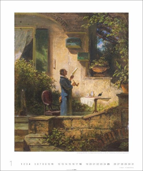 - Kauzige Sonderlinge und romantische Landschaften: Monatskalender mit 12 Kunstwerken von Carl Spitzweg- Liebevolle Szenen aus dem bürgerlichen Alltag: Kalender im Großformat mit Gemälden des beliebten deutschen Künstlers der Spätromantik- Kleine Meisterwerke im großen Format: Wandkalender XL mit den Maßen 46 × 55 cm mit Malerei im Übergang von Romantik zum Biedermeier- Menschliche Schwächen zum Schmunzeln: Kalender für die Wand mit Kunstdrucken von Spitzwegs Gemälden- Jahr für Jahr das perfekte Geschenk für Kunstliebhaber:innen: die Kunstkalender von Weingarten im Athesia Kalenderverlag
