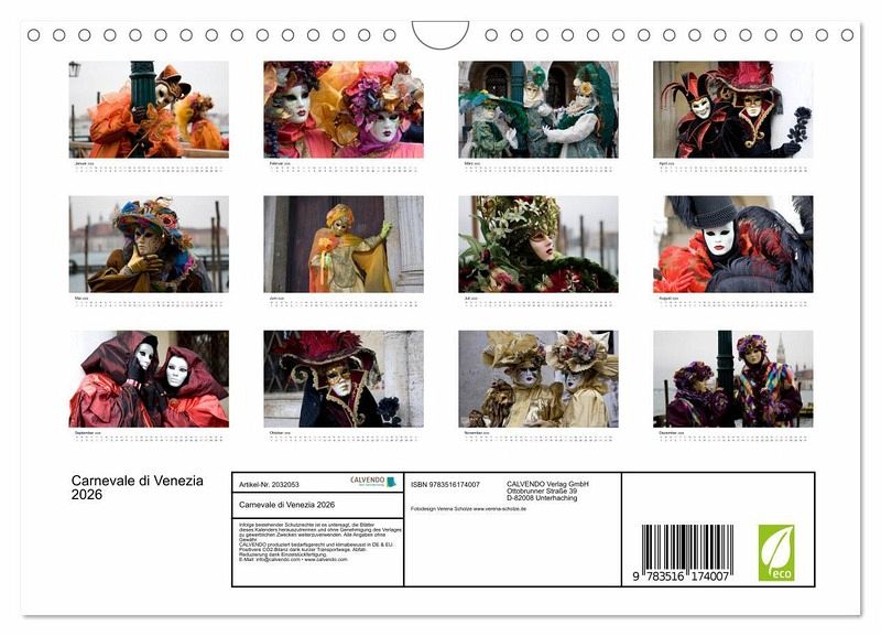 QUALITÄT - Hochwertiger Fotokalender mit 12 wunderschönen Motiven auf lichtbeständigem Bilderdruckpapier, robuste Spiralbindung mit Aufhängebügel.NACHHALTIG - deutliche Abfallreduzierung durch bedarfsgerechte Einzelstückfertigung, umweltfreundliches FSC-zertifiziertes Papier, Produktion in Deutschland, klimabewusste Logistik.PERFEKTES GESCHENK - Kalender für Freunde und Familie, für Kinder und Erwachsene, jung und alt, zu Weihnachten, Geburtstag oder zwischendurch.VIELFALT - Bildkalender in verschiedenen Formaten, z.B. DIN A5, DIN A4, DIN A3 sowie DIN A2. Ob Naturmotiv, Gemälde oder Fotos, ideal für ein persönliches Wohlfühlambiente.Karneval in Venedig von Autor(in): Fotodesign Verena Scholze