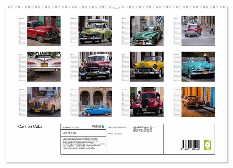 PREMIUM-LINIE - Brillanter Fotokalender mit 12 wunderschönen Motiven, Kunstdruck in Hochglanz in Museumsqualität.QUALITÄT - edle Materialien, stabile Rückwand mit 2 innovativen Einstecktaschen für eine optimale Präsentation an der Wand.NACHHALTIG - deutliche Abfallreduzierung durch bedarfsgerechte Einzelstückfertigung, umweltfreundliches FSC-zertifiziertes Papier, Produktion in Deutschland, klimabewusste Logistik.PERFEKTES GESCHENK - Kalender für Freunde und Familie, für Kinder und Erwachsene, jung und alt, zu Weihnachten, Geburtstag oder zwischendurch.Autos in allen Farben - Kuba ist ein Paradies für alle, die sich für Oldtimer begeistern. von Autor(in): Michael Fahrenbach