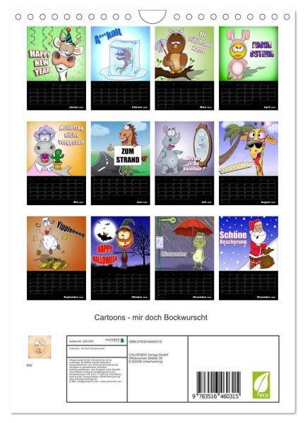 QUALITÄT - Hochwertiger Fotokalender mit 12 wunderschönen Motiven auf lichtbeständigem Bilderdruckpapier, robuste Spiralbindung mit Aufhängebügel.NACHHALTIG - deutliche Abfallreduzierung durch bedarfsgerechte Einzelstückfertigung, umweltfreundliches FSC-zertifiziertes Papier, Produktion in Deutschland, klimabewusste Logistik.PERFEKTES GESCHENK - Kalender für Freunde und Familie, für Kinder und Erwachsene, jung und alt, zu Weihnachten, Geburtstag oder zwischendurch.VIELFALT - Bildkalender in verschiedenen Formaten, z.B. DIN A5, DIN A4, DIN A3 sowie DIN A2. Ob Naturmotiv, Gemälde oder Fotos, ideal für ein persönliches Wohlfühlambiente.Kalender für Cartoonfans und Tierliebhaber von Autor(in): Reiko Werthmann