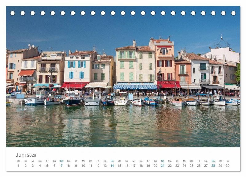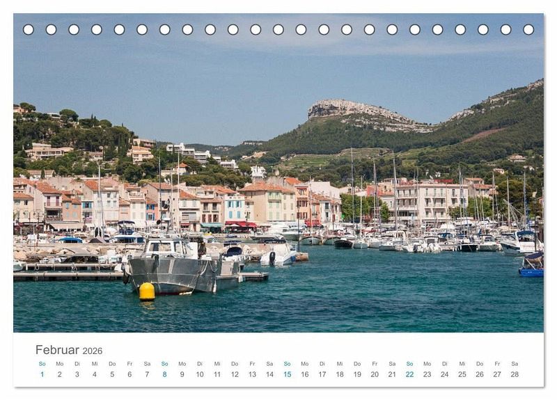 Cassis, im Westen der Provence gelegen, strömt aufgrund seiner natürlichen Lage und seiner Altstadt mit Fischerhafen echtes provenzalisches Flair aus. Wunderschön ist auch der die Stadt umgebende Nationalpark Calanques mit seinen spektakulären Felsklippen und versteckten Badebuchten. Beeindruckender Teil des Nationalparks sind "Cap Canaille" und "Grand Tête", die mit fast 400 Meter Höhe höchsten Klippen Frankreichs. Erleben Sie mit den Fotos dieses Kalenders eine Reise in eine der schönsten Regionen der Provence.