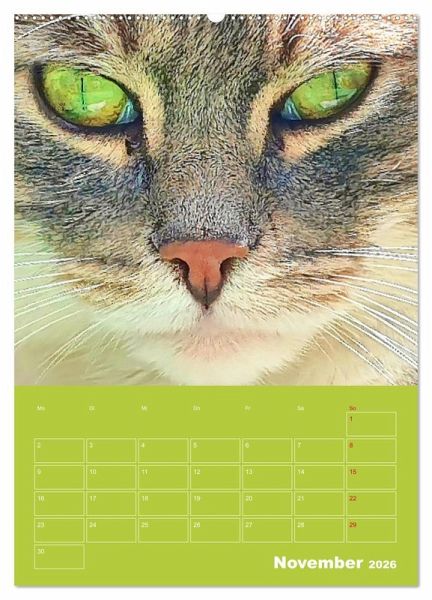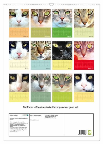 QUALITÄT - Hochwertiger Fotokalender mit 12 wunderschönen Motiven auf lichtbeständigem Bilderdruckpapier, robuste Spiralbindung mit Aufhängebügel.NACHHALTIG - deutliche Abfallreduzierung durch bedarfsgerechte Einzelstückfertigung, umweltfreundliches FSC-zertifiziertes Papier, Produktion in Deutschland, klimabewusste Logistik.PERFEKTES GESCHENK - Kalender für Freunde und Familie, für Kinder und Erwachsene, jung und alt, zu Weihnachten, Geburtstag oder zwischendurch.VIELFALT - Bildkalender in verschiedenen Formaten, z.B. DIN A5, DIN A4, DIN A3 sowie DIN A2. Ob Naturmotiv, Gemälde oder Fotos, ideal für ein persönliches Wohlfühlambiente.Ausdrucksstarke Katzenportraits in Nahaufnahme von Autor(in): Michaela Spreider