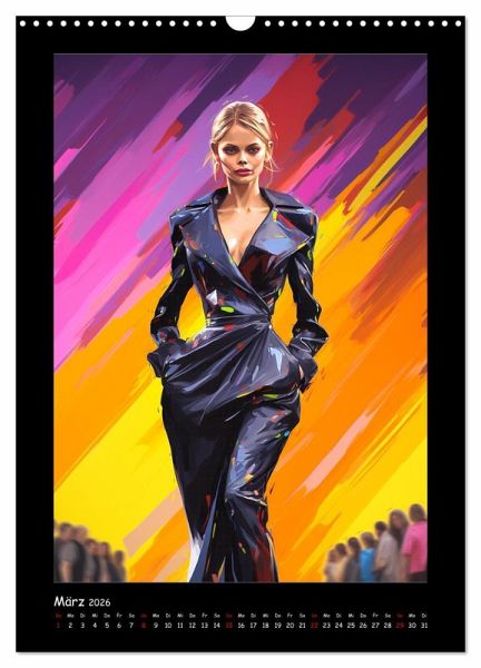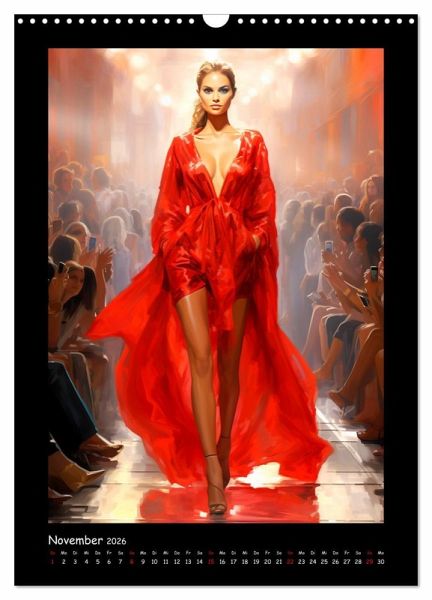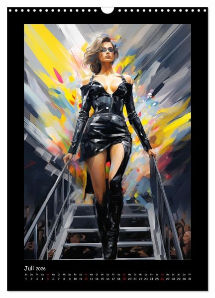 High Fashion! Wer liebt sie nicht? Tauchen Sie ein in die Welt des Glamours und lassen Sie sich von schönen Models auf dem Catwalk begeistern, während sie die neuesten Kreationen präsentieren. Jeder Monat zeigt ein Girl auf dem Cat Walk, bei einer beeindruckenden Fashion Show. Diese tollen Illustrationen wurden mit Hilfe fortschrittlicher KI-Technologie generiert und bringen Laufstegatmosphäre und Farbe in Ihr Zuhause.
