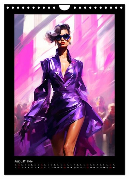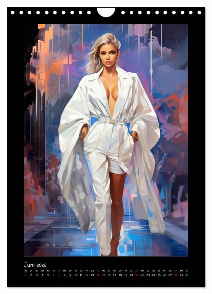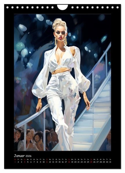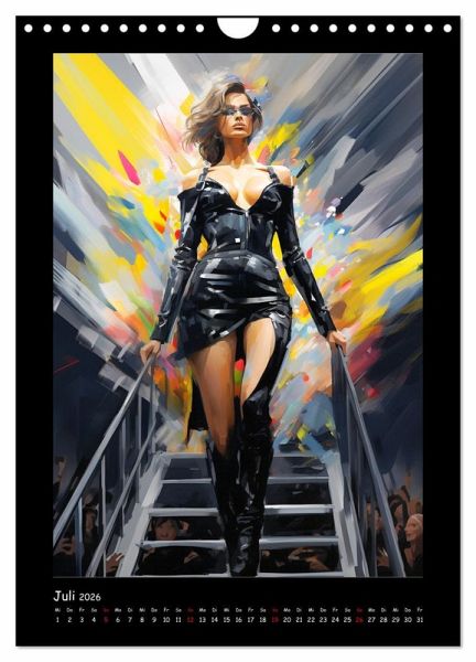 High Fashion! Wer liebt sie nicht? Tauchen Sie ein in die Welt des Glamours und lassen Sie sich von schönen Models auf dem Catwalk begeistern, während sie die neuesten Kreationen präsentieren. Jeder Monat zeigt ein Girl auf dem Cat Walk, bei einer beeindruckenden Fashion Show. Diese tollen Illustrationen wurden mit Hilfe fortschrittlicher KI-Technologie generiert und bringen Laufstegatmosphäre und Farbe in Ihr Zuhause.