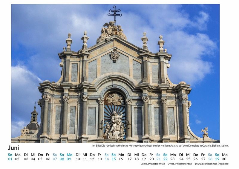 Entdecken Sie die faszinierende Schönheit Catanias mit unserem exklusiven Wandkalender! Lassen Sie sich Monat für Monat von 12 atemberaubenden Motiven dieser charmanten Stadt an der Ostküste Siziliens verzaubern. Ob der majestätische Ätna, historische Bauwerke oder das mediterrane Flair ¿ jeder Monat bringt Sie ein Stück näher an die Seele Italiens. Gedruckt auf hochwertigem, lichtbeständigem Bilderdruckpapier und in Deutschland auf FSC-zertifiziertem Papier produziert, ist dieser Kalender nicht nur ein optisches Highlight, sondern auch umweltfreundlich. Perfekt für Ihr Zuhause oder als Geschenk für Italien-Liebhaber. Holen Sie sich Catania an Ihre Wand! Hochwertig Erleben Sie ein Jahr voller Eleganz mit unserem Premium-Fotokalender. Jedes der 12 Motive ist auf hochwertigem, lichtbeständigem Bilderdruckpapier gedruckt, um die Lebendigkeit jedes Bildes zu bewahren. Die robuste Spiralbindung gewährleistet Langlebigkeit und einfache Handhabung. Nachhaltig Unser Engagement für die Umwelt spiegelt sich in jedem Exemplar wider. Durch die Produktion auf Abruf reduzieren wir signifikant unseren Abfall. Wir verwenden ausschließlich umweltfreundliches, FSC-zertifiziertes Papier. Stolz gefertigt in Deutschland, achten wir bei unserer Logistik auf Klimaschutz, um unseren ökologischen Fußabdruck zu minimieren. Das ideale Geschenk Dieser Kalender ist das perfekte Präsent für jeden Anlass ¿ ob Weihnachten, Geburtstage oder einfach als liebevolle Aufmerksamkeit zwischendurch. Geeignet für Freunde, Familie, Kinder und Erwachsene gleichermaßen, bereichert er jedes Zuhause mit seiner Vielfalt und Schönheit, unabhängig vom Alter der Beschenkten.