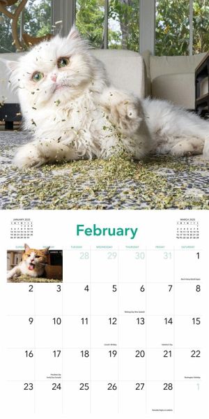 A year of hilarious, irresistible photographs of cats who have gotten into the good stuff. * THE HIGH LIFE: Goofy photos of cats under the influence make a charming - and hysterically funny - calendar for cat lovers with a sense of humor. * UNDER THE INFLUENCE: Based on Andrew Marttila’s beloved Instagram account, enjoy a year of chilled-out Persians, Bengals, and tabbies getting dazed and confused. * GREAT GIFT: Cat parents and pet lovers will love this calendar that shows off the silly side of felines and celebrates their favorite herb. * NOW PLASTIC-FREE!: For 2025, Workman Calendars are completely plastic-free. All wall calendars are now printed with an extended paper flap closed with a fully recyclable seal – no more shrink wrap!