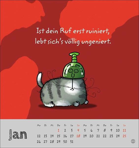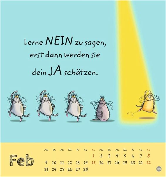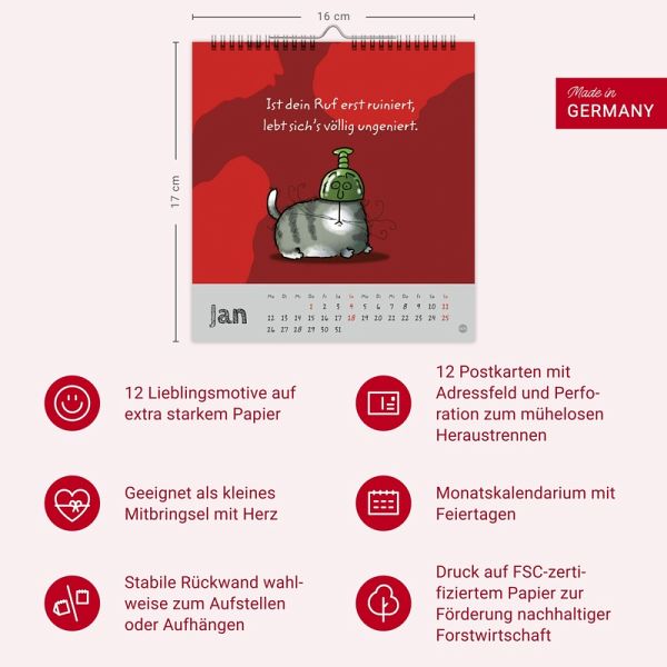 - Humor ist, wenn selbst die Katze lacht: Der Catzz-Kalender 2026 mit Sprüchen, die das Leben leichter machen- Witzige Cartoon-Katzen aus der Feder von Alexander Holzach: Der Monatskalender für alle, die mit einem Lächeln in den Tag starten wollen- Gute Laune und coole Weisheiten zum Versenden oder selbst behalten: 12 Postkarten-Motive zum einfachen Heraustrennen- Cat Content geht überall: Nutzbar als Aufstellkalender oder Wandkalender im handlichen Format 16 x 17 cm- Nur die schönsten Motive zum Sammeln und Verschicken: Postkartenkalender von Heye im Athesia Kalenderverlag