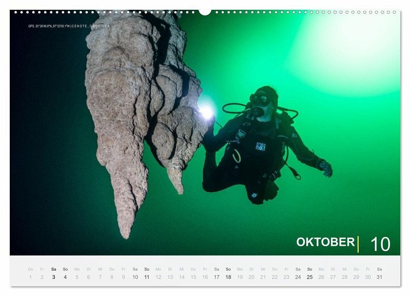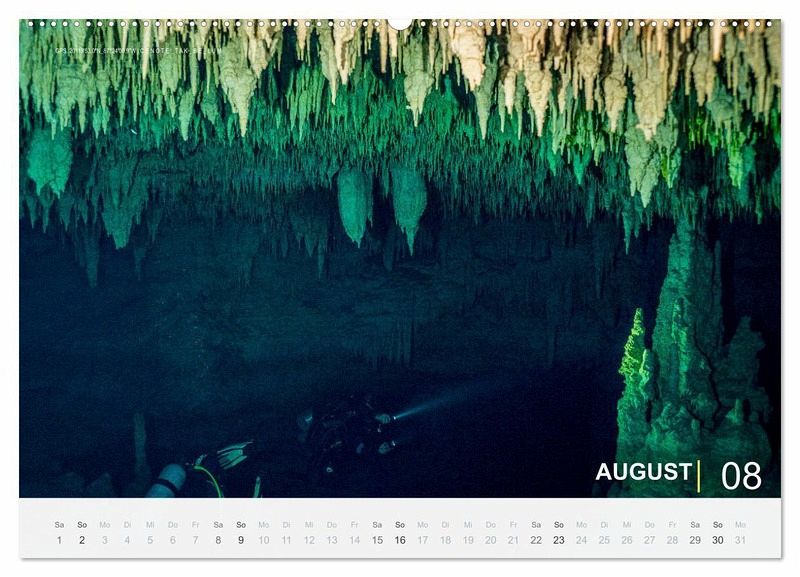 Das Cenoten Tauchen in Mexiko gehört zu den absoluten Highlights für Sporttaucher und Höhlentaucher. In diesem Kalender finden sie Monat für Monat Bilder von spektakulären Lichtvorhängen, Trennschichten aus Schwefel und Halokline (Süss-/Salzwasser) und sagenhaften Tropfstein Formationen finden sie in diesem Kalender alles was das Tauchen - alles was das Tauchen in den Cenoten in Mexiko für begeisterte Taucher so einzigartig macht.