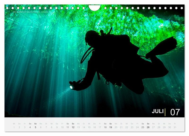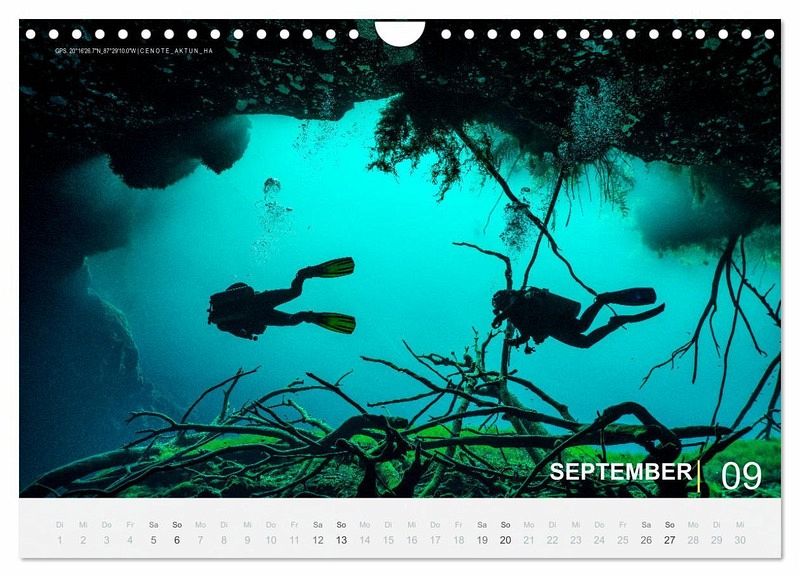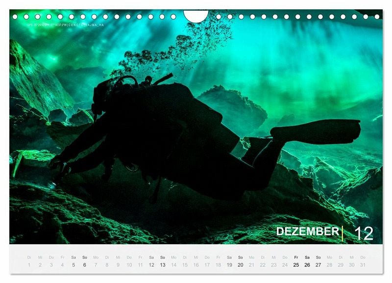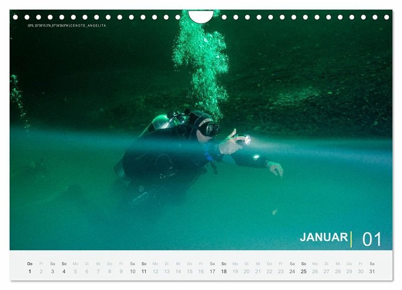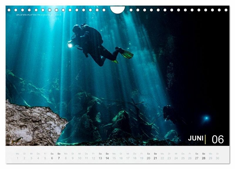 Das Cenoten Tauchen in Mexiko gehört zu den absoluten Highlights für Sporttaucher und Höhlentaucher. In diesem Kalender finden sie Monat für Monat Bilder von spektakulären Lichtvorhängen, Trennschichten aus Schwefel und Halokline (Süss-/Salzwasser) und sagenhaften Tropfstein Formationen finden sie in diesem Kalender alles was das Tauchen - alles was das Tauchen in den Cenoten in Mexiko für begeisterte Taucher so einzigartig macht.