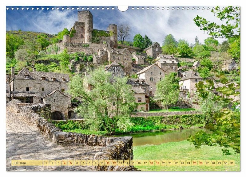 Februar: Das alte Dorf Saint-Chély-du-Tarn mit seinem hübschen Wasserfall