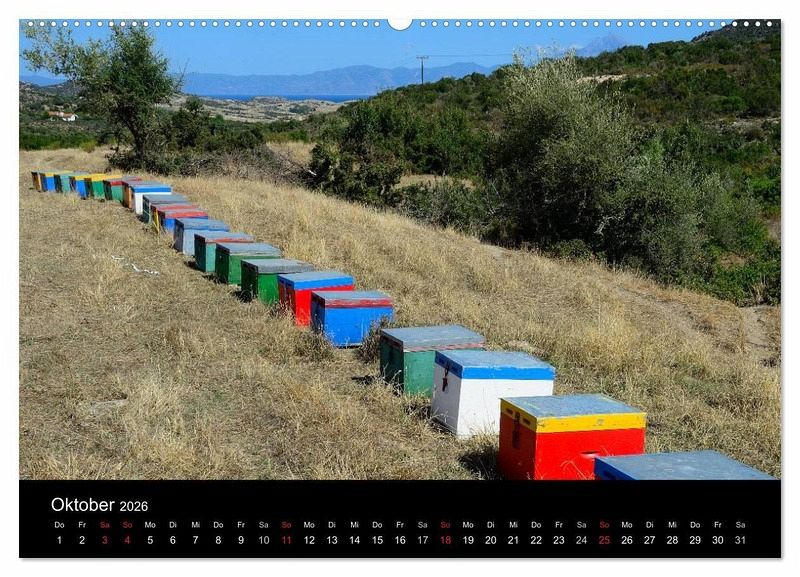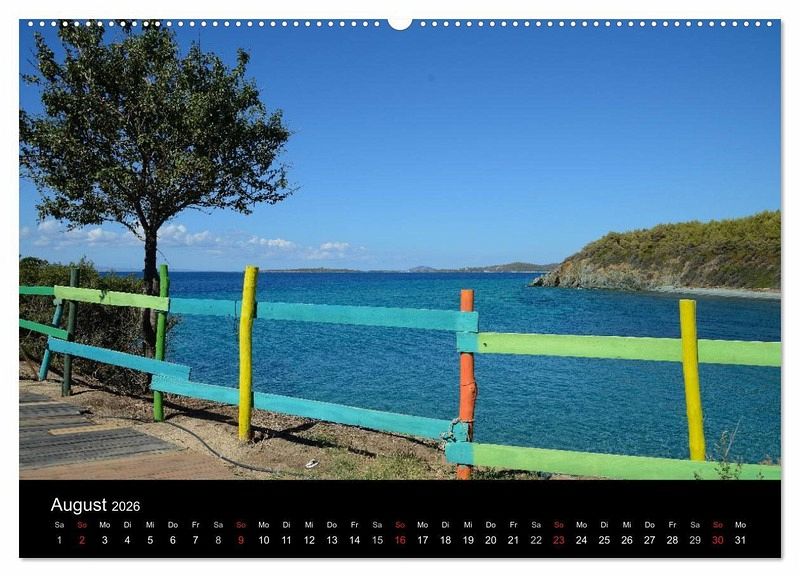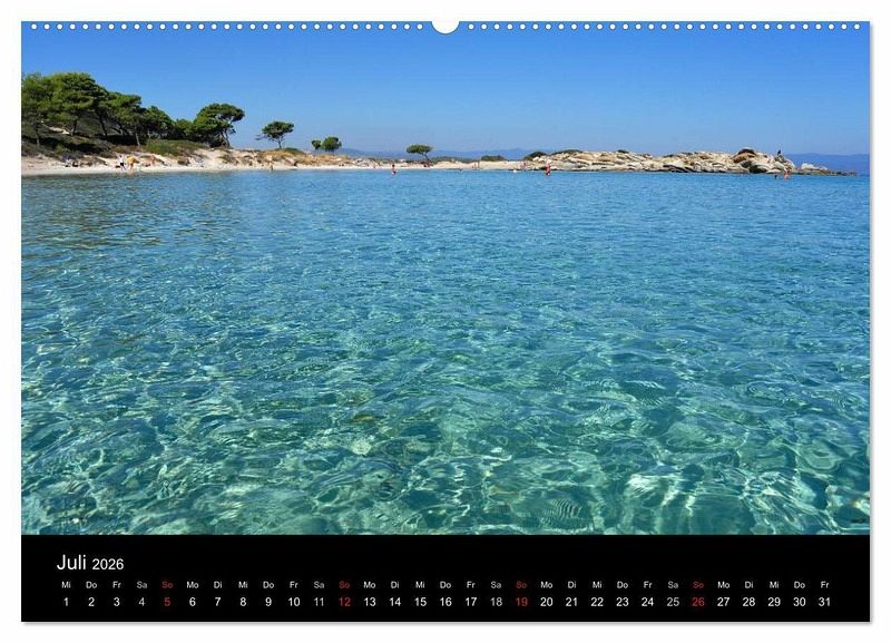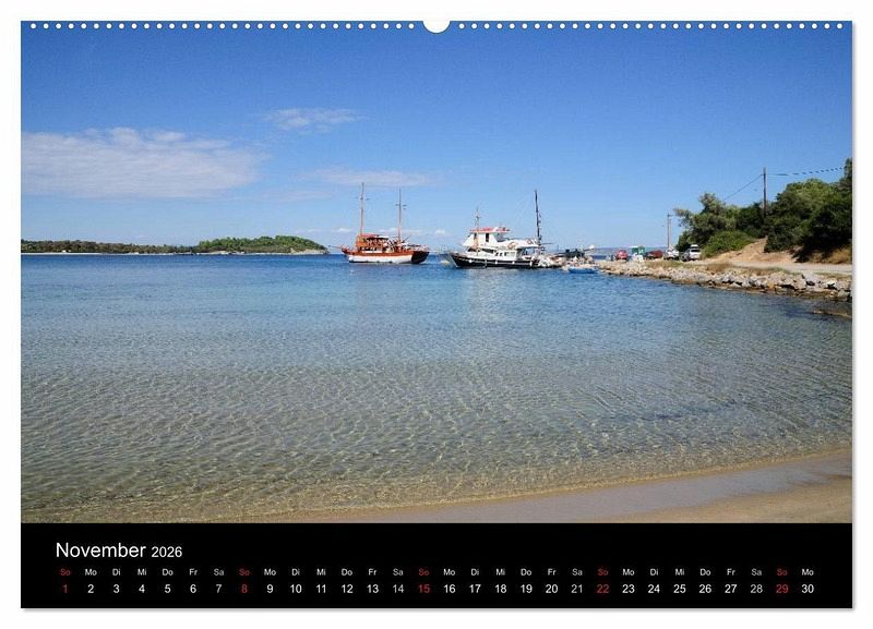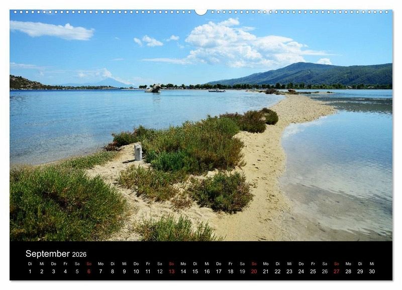 Dieser Kalender zeigt die schönsten Gegenden, Strände, Lagunen, Buchten, Klöster von Kassandra, Sithonia und Athos auf Chalkidiki