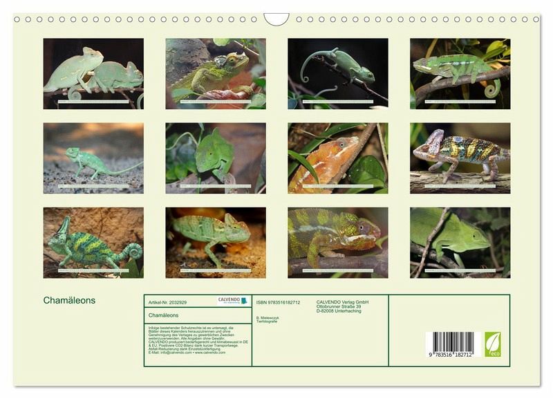 QUALITÄT - Hochwertiger Fotokalender mit 12 wunderschönen Motiven auf lichtbeständigem Bilderdruckpapier, robuste Spiralbindung mit Aufhängebügel.NACHHALTIG - deutliche Abfallreduzierung durch bedarfsgerechte Einzelstückfertigung, umweltfreundliches FSC-zertifiziertes Papier, Produktion in Deutschland, klimabewusste Logistik.PERFEKTES GESCHENK - Kalender für Freunde und Familie, für Kinder und Erwachsene, jung und alt, zu Weihnachten, Geburtstag oder zwischendurch.VIELFALT - Bildkalender in verschiedenen Formaten, z.B. DIN A5, DIN A4, DIN A3 sowie DIN A2. Ob Naturmotiv, Gemälde oder Fotos, ideal für ein persönliches Wohlfühlambiente.Chamäleons - einfach Wunderbar von Autor(in): Barbara Mielewczyk
