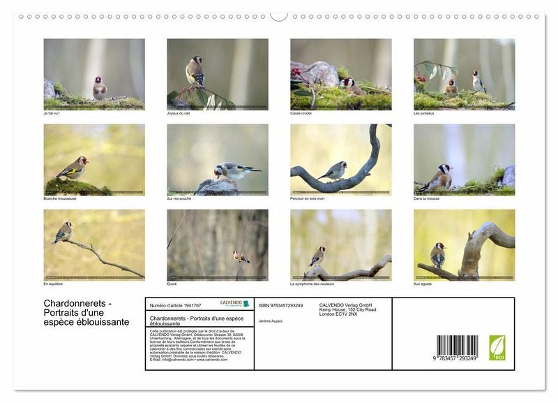 Découvrez notre calendrier exclusif "Chardonnerets - Portraits d'une espèce éblouissante" , une véritable ode à ces magnifiques oiseaux chanteurs ! Chaque mois, laissez-vous émerveiller par des photographies à couper le souffle qui mettent en valeur les couleurs éclatantes et les comportements fascinants des chardonnerets.Accrochez ce calendrier dans votre bureau, votre salon ou même votre cuisine, et laissez-vous inspirer par la beauté des chardonnerets tout au long de l'année.