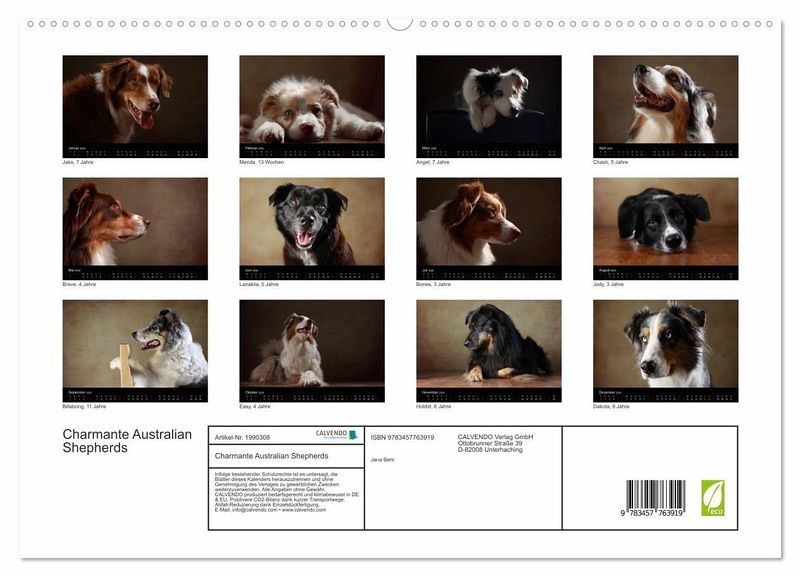 PREMIUM-LINIE - Brillanter Fotokalender mit 12 wunderschönen Motiven, Kunstdruck in Hochglanz in Museumsqualität.QUALITÄT - edle Materialien, stabile Rückwand mit 2 innovativen Einstecktaschen für eine optimale Präsentation an der Wand.NACHHALTIG - deutliche Abfallreduzierung durch bedarfsgerechte Einzelstückfertigung, umweltfreundliches FSC-zertifiziertes Papier, Produktion in Deutschland, klimabewusste Logistik.PERFEKTES GESCHENK - Kalender für Freunde und Familie, für Kinder und Erwachsene, jung und alt, zu Weihnachten, Geburtstag oder zwischendurch.Australian Shepherds im Portrait von Autor(in): Jana Behr