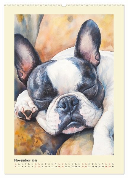 Dieser liebevoll gestaltete Kalender vereint 12 wunderschöne Aquarell-Illustrationen von französischen Bulldoggen, die mit Hilfe von KI erschaffen wurden. Jede Szene fängt einen besonderen, charmanten Augenblick ein - mal verspielt, mal verträumt, mal voller Energie. Die Bilder zeigen die kleinen Charakterköpfe in verschiedenen Jahreszeiten und Stimmungen, vom Frühling bis in den Herbst. Ideal für alle, die diese besondere Hunderasse lieben und sich Monat für Monat an neuen, künstlerischen Motiven erfreuen möchten.