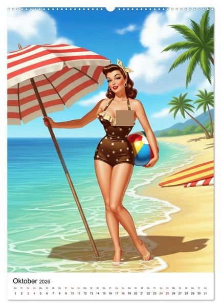 Entdecken Sie jeden Monat eine neue Strand-Schönheit, die im hoch taillierten Bikini und mit viel Augenzwinkern posiert. Diese verführerischen Beach-Babes erinnern an die Ikonen von Hollywood und bringen den unschuldigen, aber sexy Charme der Wirtschaftswunder-Jahre direkt zu Ihnen nach Hause. Ein Muss für alle Liebhaber von Retro, Vintage und dem legendären Pin-up-Stil!