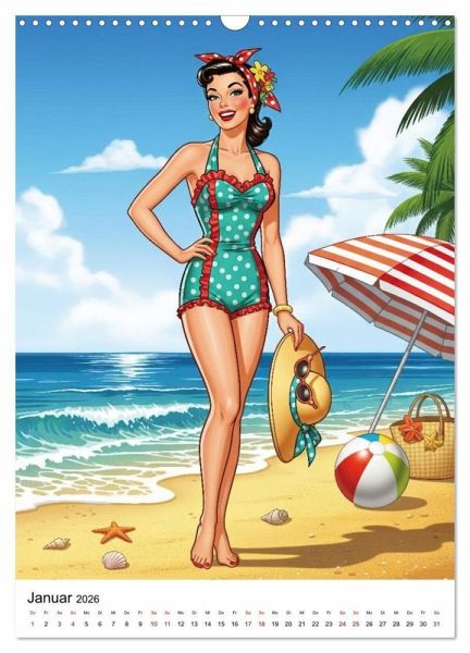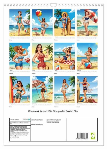Tauchen Sie ein in eine Ära zeitloser Eleganz und koketter Posen. Der Kalender "Die Pin-ups der golden 50s" präsentiert 12 hinreißende Illustrationen im klassischen Stil der 50er.