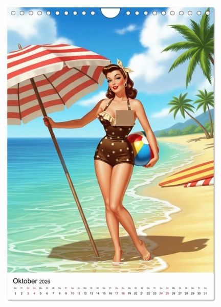 Entdecken Sie jeden Monat eine neue Strand-Schönheit, die im hoch taillierten Bikini und mit viel Augenzwinkern posiert. Diese verführerischen Beach-Babes erinnern an die Ikonen von Hollywood und bringen den unschuldigen, aber sexy Charme der Wirtschaftswunder-Jahre direkt zu Ihnen nach Hause. Ein Muss für alle Liebhaber von Retro, Vintage und dem legendären Pin-up-Stil!