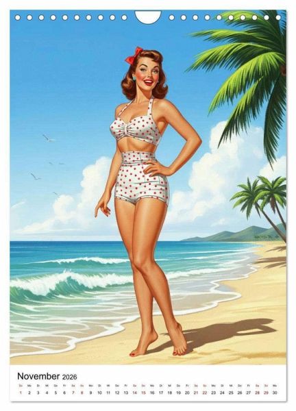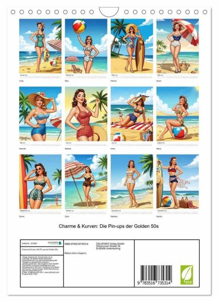 Tauchen Sie ein in eine Ära zeitloser Eleganz und koketter Posen. Der Kalender "Die Pin-ups der golden 50s" präsentiert 12 hinreißende Illustrationen im klassischen Stil der 50er.