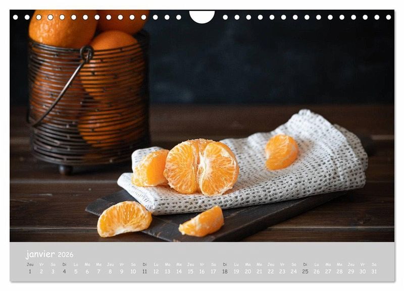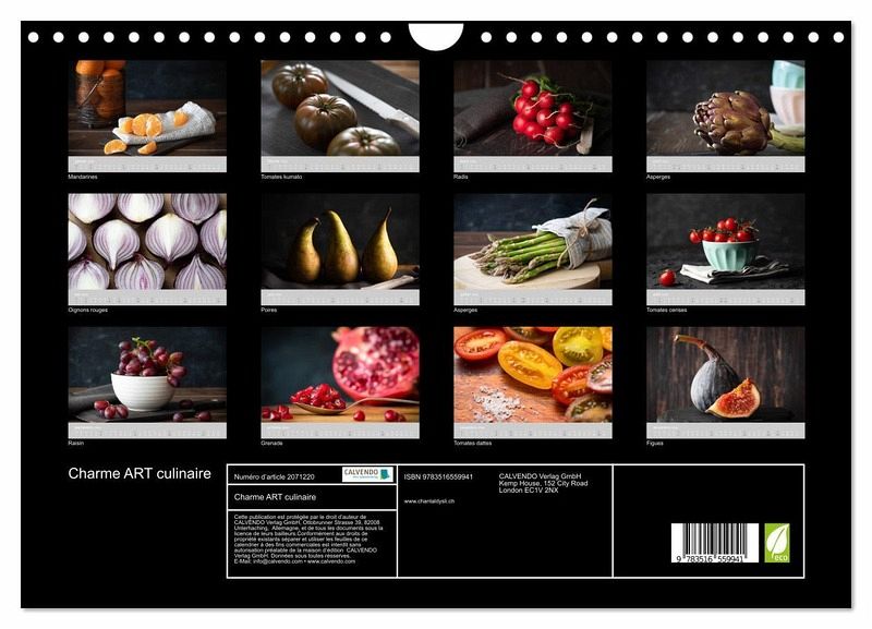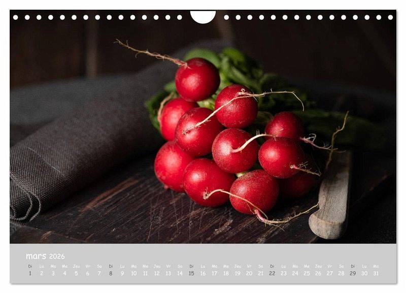 Fruits et légumes - présentés de manière naturelle, savoureuse et authentique. Les photos captivent notamment par leur composition et la combinaison avec le bois et d'autres matériaux naturels. Ce calendrier attire l'attention dans chaque cuisine, salon ou salle à manger.