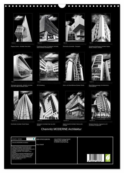 QUALITÄT - Hochwertiger Fotokalender mit 12 wunderschönen Motiven auf lichtbeständigem Bilderdruckpapier, robuste Spiralbindung mit Aufhängebügel.NACHHALTIG - deutliche Abfallreduzierung durch bedarfsgerechte Einzelstückfertigung, umweltfreundliches FSC-zertifiziertes Papier, Produktion in Deutschland, klimabewusste Logistik.PERFEKTES GESCHENK - Kalender für Freunde und Familie, für Kinder und Erwachsene, jung und alt, zu Weihnachten, Geburtstag oder zwischendurch.VIELFALT - Bildkalender in verschiedenen Formaten, z.B. DIN A5, DIN A4, DIN A3 sowie DIN A2. Ob Naturmotiv, Gemälde oder Fotos, ideal für ein persönliches Wohlfühlambiente.Moderne Architektur in Chemnitz von Autor(in): Klaus Ruttloff