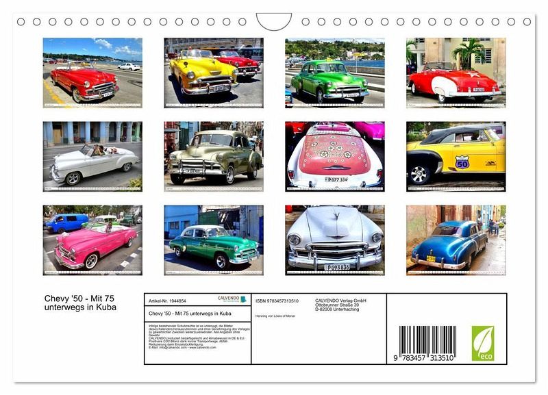 QUALITÄT - Hochwertiger Fotokalender mit 12 wunderschönen Motiven auf lichtbeständigem Bilderdruckpapier, robuste Spiralbindung mit Aufhängebügel.NACHHALTIG - deutliche Abfallreduzierung durch bedarfsgerechte Einzelstückfertigung, umweltfreundliches FSC-zertifiziertes Papier, Produktion in Deutschland, klimabewusste Logistik.PERFEKTES GESCHENK - Kalender für Freunde und Familie, für Kinder und Erwachsene, jung und alt, zu Weihnachten, Geburtstag oder zwischendurch.VIELFALT - Bildkalender in verschiedenen Formaten, z.B. DIN A5, DIN A4, DIN A3 sowie DIN A2. Ob Naturmotiv, Gemälde oder Fotos, ideal für ein persönliches Wohlfühlambiente.Der US-Oldtimer Chevrolet aus dem Jahre 1950 in Kuba von Autor(in): Henning von Loewis of Menar