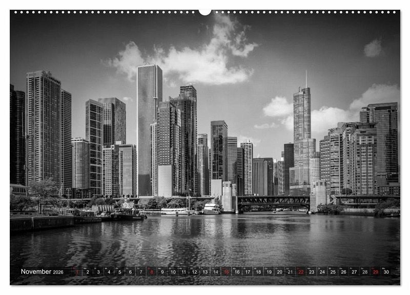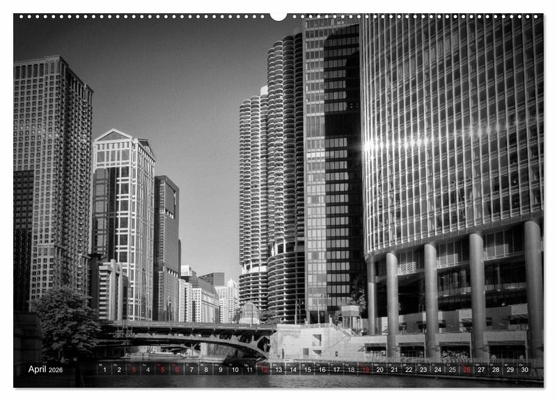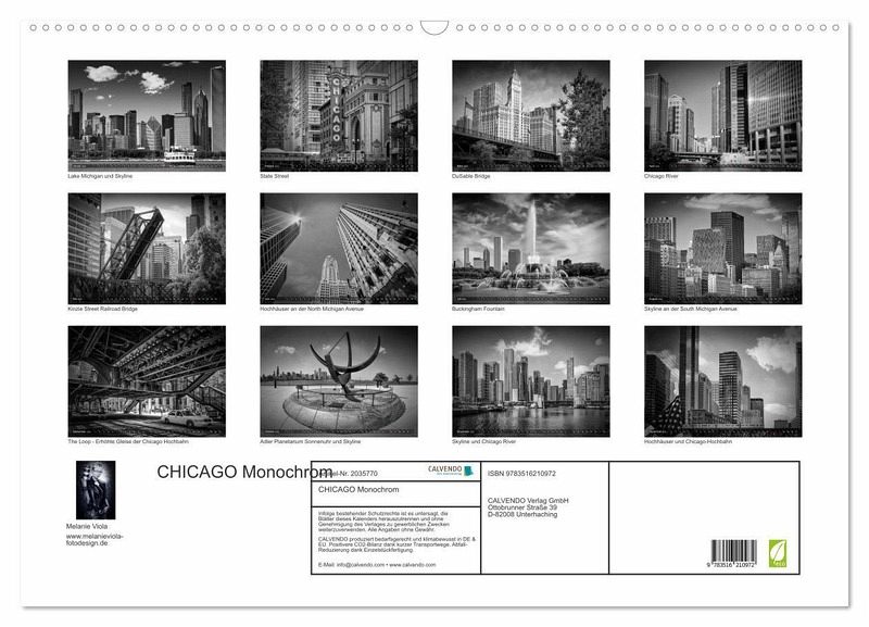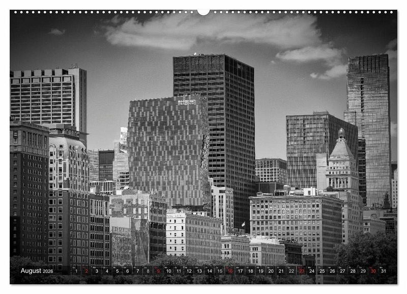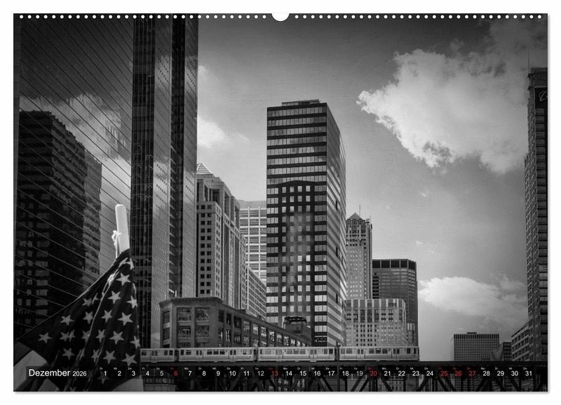Chicago befindet sich sehr idyllisch gelegen am Lake Michigan. Die Stadt bietet eine große Vielfalt an Sehenswürdigkeiten. Viele neue und alte Wolkenkratzer bilden das Zentrum der Stadt. Die Hochbahngleise der EL sind das Herzstück des als Loop bekannten Innenstadtrings. In diesem Kalender finden Sie 12 ansprechende monochrome Ansichten aus der US-Metropole.