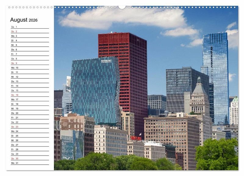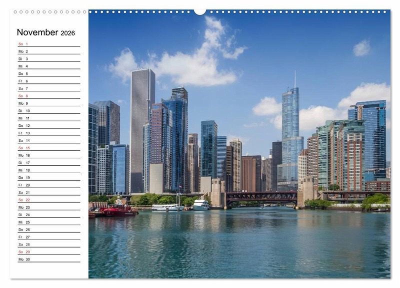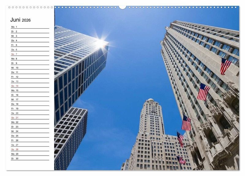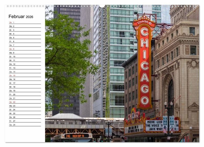 Chicago befindet sich sehr idyllisch gelegen am Lake Michigan. Die Stadt bietet eine große Vielfalt an Sehenswürdigkeiten, die in wenigen Tagen nicht ausreichend zu erkunden sind. Viele neue und alte Wolkenkratzer bilden das Zentrum der Stadt. Die Hochbahngleise der EL sind das Herzstück des als Loop bekannten Innenstadtrings. In diesem Terminplaner finden Sie 12 ansprechende Ansichten der US-Metropole.