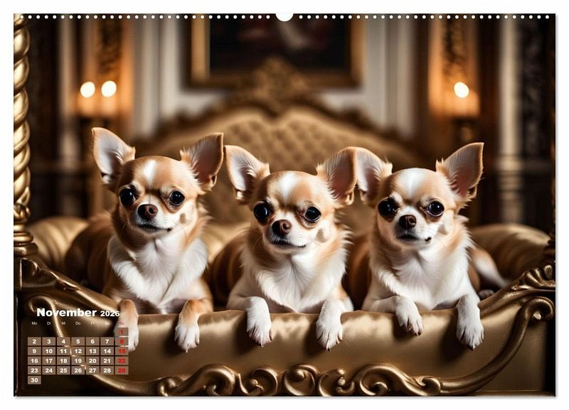 Den winzigen, nur bis zu etwa 23 cm große und nur etwa 3 Kilogramm schweren Hund gibt es lang - und kurzhaarig. Im Rassestandard sind alle Farben bis auf Merle erlaubt. Der Chihuahua ist mutig, intelligent und selbstbewusst, eine brisante Mischung für den kleinsten, den es gibt. Regeln müssen explizit festgelegt werden.. Es ist ratsam, möglichst früh mit einer konsequenten Erziehung zu beginnen. Hundehalter sollten sich nicht in dem süßen Gesicht verlieren, dass diese Hunderasse aufweist. Gut erzogen ist er ein sehr freundlicher Hund, nicht erzogen wird er zum Tyrann. Zuweilen verfällt er in Größenwahn und begibt sich in Gefahr, da er meint, es auch mit einem Rottweiler oder Bernhardiner aufnehmen zu können. Mit Hilfe der KI wurde der niedliche Kleinhund zauberhaft in Szene gesetzt.