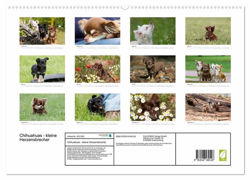 Dieser Kalender zeigt die entzückenden Kleinhunde, die sich nicht erst seit Paris Hilton großer Beliebtheit erfreuen, in vielen Farben und unterschiedlichen Situationen. Alle Fotos sind Outdoor fotografiert.