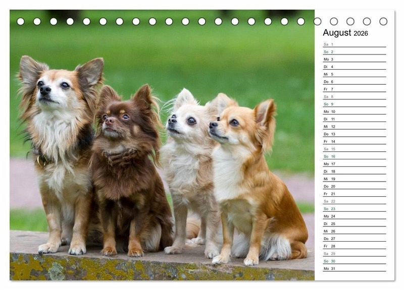 Dieser Kalender zeigt die entzückenden Kleinhunde, die sich nicht erst seit Paris Hilton großer Beliebtheit erfreuen, in vielen Farben und unterschiedlichen Situationen. Alle Fotos sind Outdoor fotografiert.