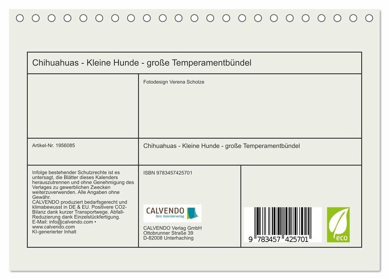 QUALITÄT - Hochwertiger Fotokalender mit 12 wunderschönen Motiven auf lichtbeständigem Bilderdruckpapier, robuste Spiralbindung.NACHHALTIG - deutliche Abfallreduzierung durch bedarfsgerechte Einzelstückfertigung, umweltfreundliches FSC-zertifiziertes Papier, Produktion in Deutschland, klimabewusste Logistik.PERFEKTES GESCHENK - Kalender für Freunde und Familie, für Kinder und Erwachsene, jung und alt, zu Weihnachten, Geburtstag oder zwischendurch.VIELFALT - Bildkalender in verschiedenen Formaten, z.B. DIN A5, DIN A4, DIN A3 sowie DIN A2. Ob Naturmotiv, Gemälde oder Fotos, ideal für ein persönliches Wohlfühlambiente.Vorwitzige Chihuahuas begleiten durchs ganze Jahr von Autor(in): Fotodesign Verena Scholze