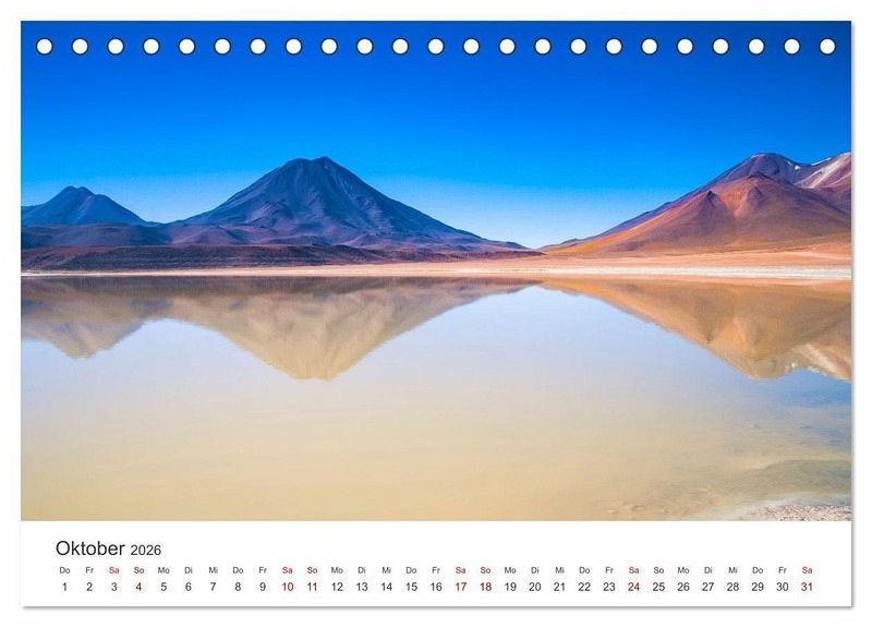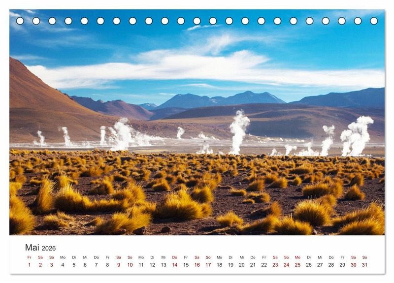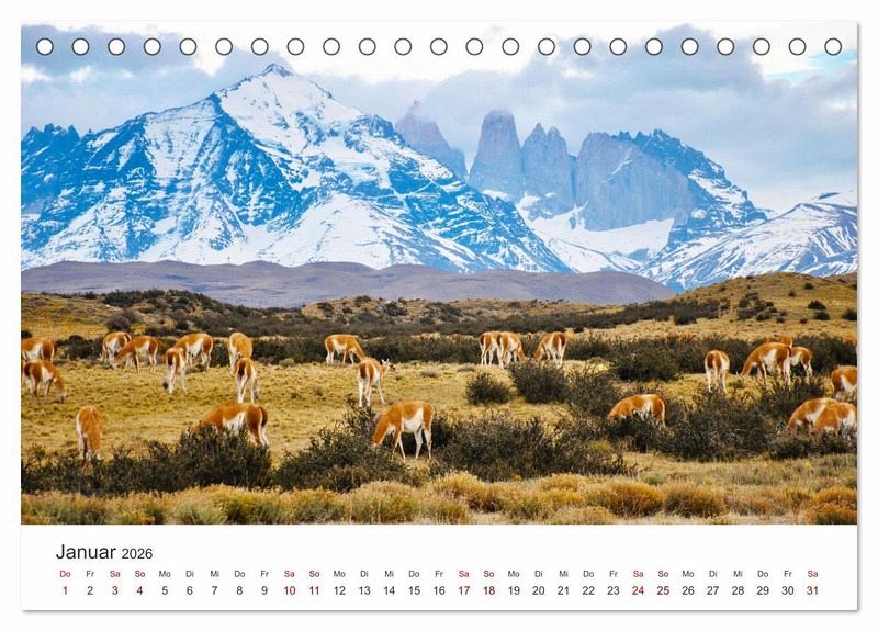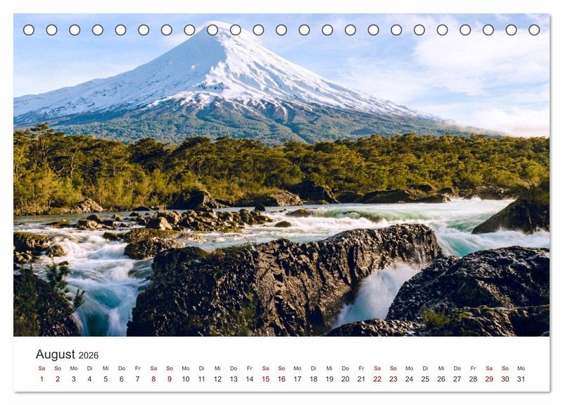 Das langgestreckte Land in Südamerika hat unglaublich viel zu bieten. Wunderschöne Lanschaften, atemberaubende Fauna und Flora und eine vielseitige Tierwelt. Mit diesem Kalender können Sie 12 atemberaubende Motive bestaunen und sich jedes Monat aufs Neue von Chiles Schönheit überaschen lassen.