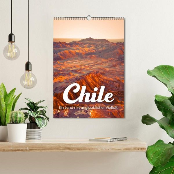 Chile ist ein unbeschreiblich schönes und einzigartiges Land. Mit den Anden, der Atacama Wüste und dem Torres del Paine Nationalpark bietet Chile eine unglaubliche Vielfalt die man selten wo anders vorfindet. Mit diesem Kalender können Sie jeden Monat eine weitere tolle Facette des wunderschönen Landes entdecken.